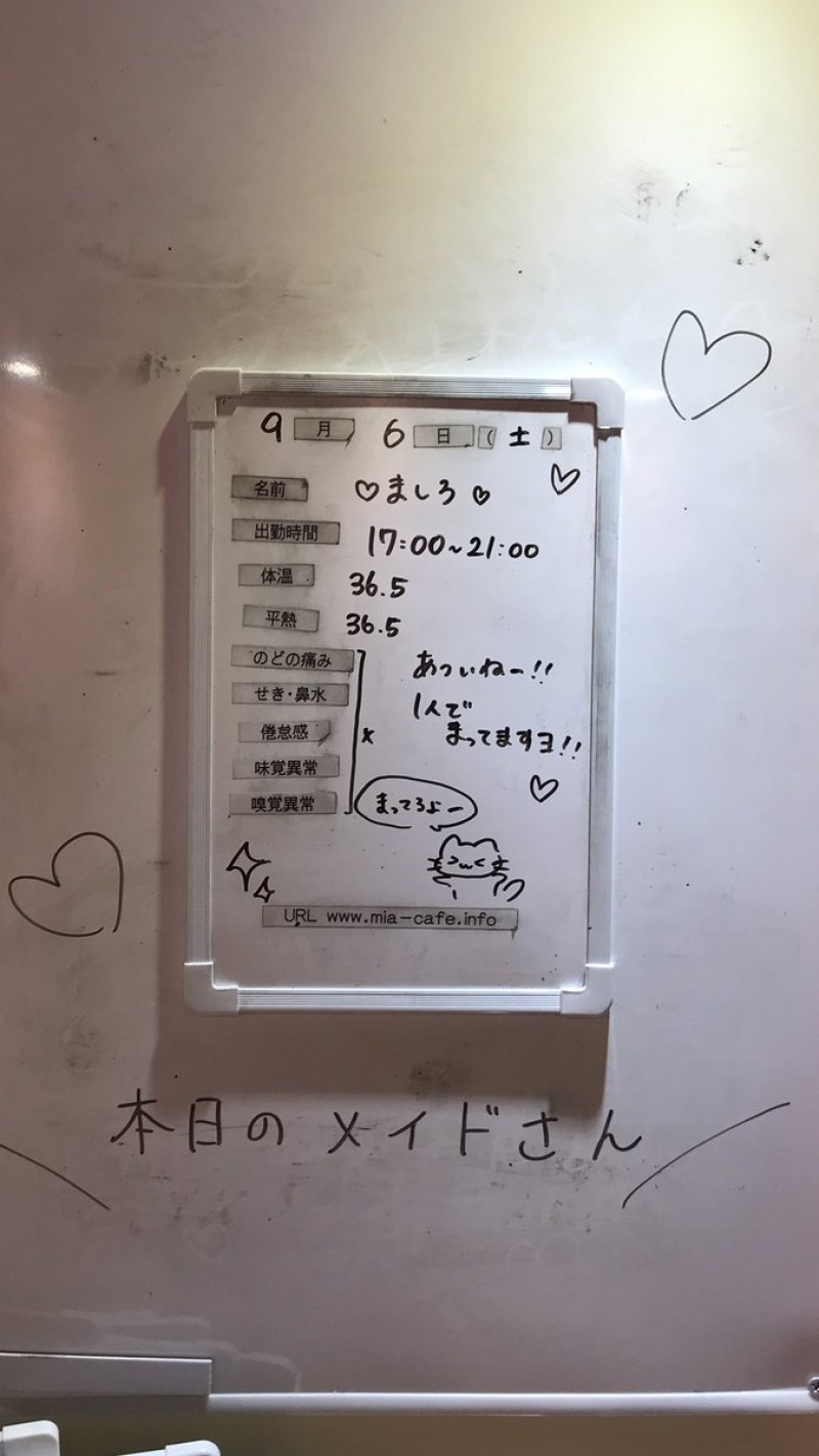 営業時間 | 静岡店は出勤スタッフがいれば営業です! 基本的に 12時~22時が営業時間です! ●静岡店のツイッター @shizuokamaidsan https://twitter.com/shizuokamaidsan ●ミア静岡店の営業曜日&営業時間● ☆月〜木 14:00〜22:00(最終受付20:00) ☆金曜日 12:00〜22:00(最終受付21:00) ☆土・日・祝 12:00〜22:00(最終受付21:00) 営業時間外はオンライン予約にてお願いいたします。 PC・携帯共通 → http://m-kanzume.moo.jp/yoyaku2/user.cgi ●ミアガイド出勤状況● スマホ・PC → 後日公開予定 ★静岡店スタッフによるミア甲府店でのメイドカフェリアル営業★ ☆不定期 サイトにてご確認ください。 http://market.chu.jp/schedule1/sche37.cgi | ||||||||||||||
