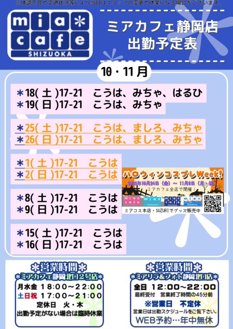 🎃10月25日(土) 17-21 こうは・ましろ・みちゃ