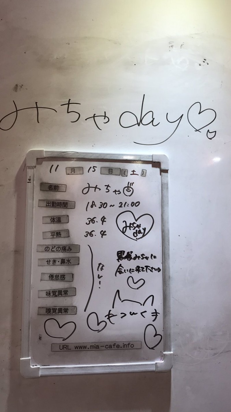| 営業時間 | 静岡店は出勤スタッフがいれば営業です! 基本的に 12時~22時が営業時間です! ●静岡店のツイッター @shizuokamaidsan https://twitter.com/shizuokamaidsan ●ミア静岡店の営業曜日&営業時間● ☆月〜木 14:00〜22:00(最終受付20:00) ☆金曜日 12:00〜22:00(最終受付21:00) ☆土・日・祝 12:00〜22:00(最終受付21:00) 営業時間外はオンライン予約にてお願いいたします。 PC・携帯共通 → http://m-kanzume.moo.jp/yoyaku2/user.cgi ●ミアガイド出勤状況● スマホ・PC → 後日公開予定 ★静岡店スタッフによるミア甲府店でのメイドカフェリアル営業★ ☆不定期 サイトにてご確認ください。 http://market.chu.jp/schedule1/sche37.cgi | ||||||||||||||