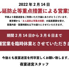 | 営業時間 | ★月曜日〜土曜日 OPEN18:00〜LAST翌5:00 ★日曜日 OPEN18:00〜LAST23:00 ★年中無休 | ||||||||||||||